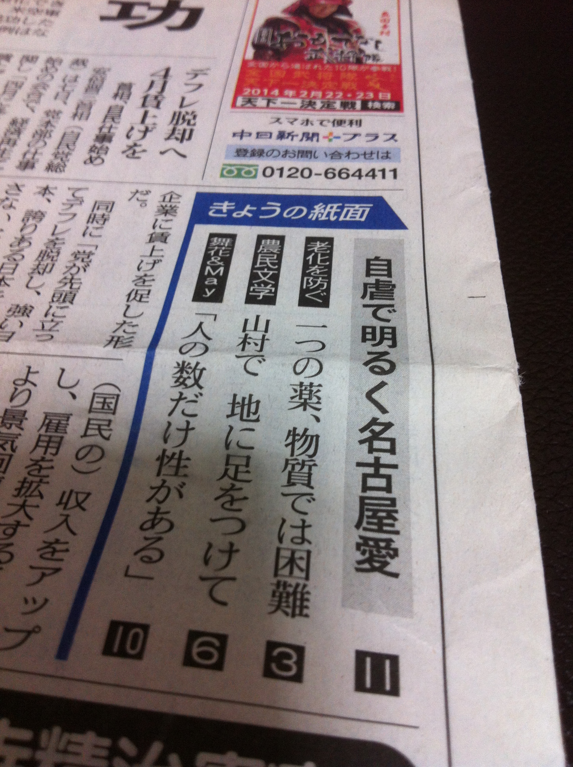 2014年1月7日付の中日新聞夕刊および1月8日付の東京新聞夕刊に『8番目のカフェテリアガール』の記事を掲載していただきました。